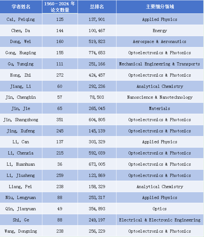 我校王樂教授等34位學者入選“年度科學影響力排行榜”,榜單較上一年度增加6位,主要分布在光學工程、信息科學與工程、材料科學與工程等學科。在34位學者當中,徐鵬教授等6位學者入選“終身科學影響力排行榜”,主要分布在光學工程、材料科學與工程等學科。