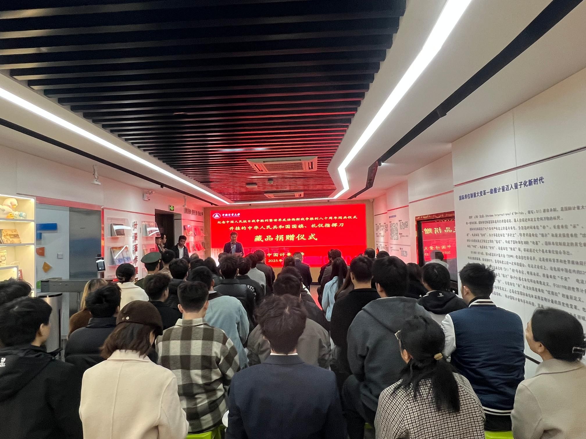 儀式上,我校博物館正式接收兩件承載民族榮光與使命擔當的特殊藏品——紀念中國人民抗日戰爭勝利暨世界反法西斯戰爭勝利80周年閱兵儀式現場升掛的中華人民共和國國旗和閱兵儀式現場使用的禮儀指揮刀。